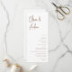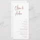 Conçu pour correspondre à nos invitations de mariage de Script manuscrit moderne. Une belle conception typographique à l'atmosphère minimaliste, avec un script manuscrit moderne en terre cuite et des lettres serif classiques. Personnalisez avec les détails de votre cérémonie, et customisez le dos avec votre fête de mariage.