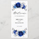Élégant programme de mariage à thème bleu royal blanc argent avec l'élégant bouquet de bleu royal, marine, argent, blanc pur bourgeons de fleurs roses et sauge vert eucalyptus feuilles. Veuillez me contacter pour toute aide sur la personnalisation ou si vous avez besoin d'un autre produit avec ce design.