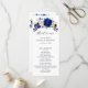 Élégant programme de mariage à thème bleu royal avec bouquet élégant de bleu royal, marine, or, bourgeons de fleurs roses couleur jaune et feuilles eucalyptus. Veuillez me contacter pour toute aide sur la personnalisation ou si vous avez besoin d'un autre produit avec ce design.