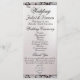 Ce design romantique présente un élégant arrière - plan blanc perlé avec des bordures de ruban et de parties scintillant, détails de la cérémonie de mariage et merci sur le devant avec les membres de la fête de mariage sur le dos. Disponible en plusieurs couleurs pour votre thème mariage. (Ruban & parties scintillant est simulé dans l'illustration). Disponible en plusieurs couleurs pour vos couleurs de thème mariage. Conçu pour coordonner avec la collection "Coeurs romantiques, ruban & étincelle sur perle". Pour modifier les détails, cliquez sur "Personnaliser". Pour déplacer le texte ou modifier la taille, la police ou la couleur du texte, cliquez sur "Cliquez pour customiser plus loin"