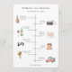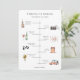 Des éléments colorés rustiques de jour de mariage aquarelle, programme chronologique. La carte comprend l'église, la caméra, la bouteille avec verre, la fixation d'assiette, notes de musique, gâteau, bouquet de tournesol, et voiture rétro. Le dos de la carte est en bleu marine. Le style et la couleur de la police de texte peuvent être customisés.