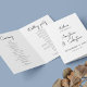 Ce script de calligraphie noir et blanc bi-plié programme de mariage apporte élégance classique et simplicité moderne à vos détails de cérémonie. Doté d'un script fluide de style manuscrit jumelé à une mise en page épurée et minimaliste, ce programme plié est idéal pour les mariages formels, traditionnels ou romantiques. La palette noir et blanc intemporelle améliore sa sophistication, tandis que le format bi-pli offre suffisamment d'espace pour l'ordre de cérémonie, la fête de mariage, les lectures ou les notes spéciales. Un beau souvenir pour vos invités et un complément élégant à votre suite mariage.