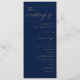 Présentez notre programme moderne de mariage bleu et or de la marine romantique! Ce programme est une représentation époustouflante de l'élégance et de la romance intemporelles. Mesurant un généreux 9,25x4 pouces, il possède un riche arrière - plan bleu marine orné de gracieuses calligraphies et textes dorés. Le design de ce programme capte l'essence de votre histoire d'amour unique, créant l'ambiance idéale pour votre journée spéciale. Grâce à son aménagement spacieux, vous aurez de la place pour partager tous les détails, les horaires et les messages chaleureux avec vos invités. Faites de votre mariage une journée vraiment inoubliable avec notre programme de mariage bleu et or de la marine romantique moderne. Commandez le vôtre aujourd'hui et laissez ce design élégant être le compagnon parfait de votre histoire d'amour.