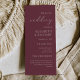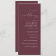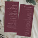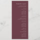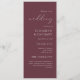 Ce programme de mariage simple et élégant présente du texte blanc aligné sur la marge droite sur un arrière - plan rouge bordeaux foncé. Le mot "mariage" apparaît dans la calligraphie d'écriture manuscrite blanche, le reste du texte dans les polices serif et italique.