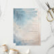 This elegant wedding program features a serene watercolor design with soft blue and beige hues, creating a tranquil and dreamy atmosphere. The layout is structured yet airy, with a vertical "WELCOME" text on the left and a centered ceremony schedule in uppercase serif fonts. Subtle cloud-like motifs enhance the ethereal feel, while customizable name and date placeholders allow for personalization. Perfect for couples seeking a formal yet approachable aesthetic, this program captures the essence of celebration and unity.