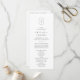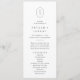 Ce simple programme de mariage monogramme moderne et unique de la collection Shylah est parfait pour un mariage classique. Le design simple en noir et blanc présente un monogramme ovale géométrique avec les initiales du couple et une atmosphère élégante mais boho. Inclure les noms du couple, la date et l'emplacement du mariage, le message de remerciement, l'ordre de service, la fête de mariage et un mémorial optionnel "en mémoire d'amour".