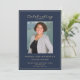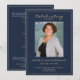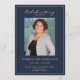 Un élégant modèle de programme de service funéraire personnalisé avec photo sur un fond bleu classique. Facile à personnaliser le texte et la photo.