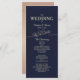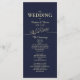Elégant, moderne, minimaliste, simple programme de mariage rose or et bleu marine avec des inséparables uniques dessinés à la main, feuillage, fleurs et scénario de calligraphie tendance.