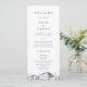 Ce programme de mariage de montagne à fleurs est parfait pour un mariage extérieur. Le design minimaliste moderne comprend une montagne bleu marine d'aquarelle avec des fleurs sauvages de chute rose pâle. Inclure le nom de la mariée et du marié, la date et le lieu du mariage, le message de remerciement, l'ordre de service, la fête de la mariée et un mémorial optionnel "en mémoire d'amour".