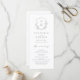 Initiales monogrammes encadrées par d'élégantes crêtes et des feuilles botaniques illustrés à la main, vos détails de l'événement en écriture élégante et police classique, simple et luxueux. Grands programmes en noir et blanc pour mariage classique moderne, mariage simple formel, élégant mariage botanique dans le jardin. Voir toutes les pièces correspondantes dans la collection.