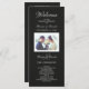 Une belle personnalisation simple mais élégante : Noir & Blanc avec Monogramme | Programme de mariage moderne / Programme de mariage moderne et lettres à la main pour votre cérémonie de mariage. Remplacez l'exemple de photo par le vôtre et utilisez les champs modèles pour ajouter facilement votre texte. Le menu Personnaliser peut également être utilisé pour modifier la couleur de la police et de l'arrière - plan pour convenir à votre jeu de couleurs mariage. Trendy et chic, mais élégant et intemporel - il s'harmonise parfaitement avec tant de styles mariages d'aujourd'hui. Montré dans un thème noir et blanc avec un arrière - plan en lin noir, mais peut être customisé à vos couleurs mariages pour le texte et arrière - plan. Ajoutez d'autres graphiques, du texte (taille, couleurs, position, polices dans les outils de conception d'édition en bas de tous les modèles), ou des monogrammes à votre personnalisation de ce modèle.