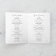 Elegant folded wedding program featuring a simple design with a modern sans serif font and an elegant script font.