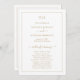 Programme de mariage en or simple mais élégant avec un agencement minimal et propre avec votre monogramme en haut avec une bordure. Ce programme de mariage de style classique avec une touche traditionnelle est idéal pour un mariage formel.