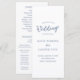 Programme de mariage de style classique présentant un design simple avec une touche moderne. Les mots d'accent sont dans un élégant script brosse et les noms de la mariée et du marié sont dans une police serif traditionnelle. La couleur est bleu poussiéreux et peut être changée en n'importe quelle couleur que vous souhaitez dans l'outil d'édition de conception. La mise en page minimale de ce programme le rend idéal pour un mariage formel.
