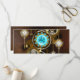Turquoise lenses with antique watch with brass gears and golden keys on rusty, brown background. Steampunk style.
