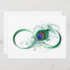 Le symbole de l'infinity with a bright, green, artistic peacock feather on a white background. Tattoo style.