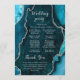 Guide your guests through your ceremony with this elegant wedding program featuring a teal blue agate marble design accented with silver details. The geode-inspired background creates a sophisticated look, perfect for fall and winter weddings, formal celebrations, or evening events. Designed to coordinate with your wedding stationery suite, this program is ideal for outlining your order of service, wedding party, and special moments of your day in a clear and stylish format. The clean typography ensures readability while complementing the agate texture. Easily personalize all text to suit your ceremony details and create a seamless, polished experience for your guests.