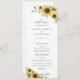 Sunflowers Green Olive Feuille Rustic Wedding Programme. Elégante verdure Eucalyptus tournesol Mariage Ordre du service