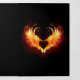Angel fire heart with flaming wings on black background.