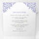 Programme de mariage en forme de carré en forme de feuille d'art botanique bleu violet avec vos propres sections histoire d'amour et souvenir. Personnalisez ce programme triplé mariage avec vos propres détails de cérémonie de mariage, les noms de fête, l'histoire d'amour et les dédicaces. Un design simple de feuilles encerclant vos propres initiales monographiques en blanc et gris et bleu violet. Autres couleurs et articles mariages correspondants disponibles. © Dessin et dessin de la feuille d'origine par Sarah Trett pour www.mylittleedenweddings.com sur Zazzle.