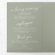 Ce programme triplé de mariage monogramme vert sauge chic boho est parfait pour un mariage minimaliste. La tonalité neutre en terre verte design bohème moderne se caractérise par une calligraphie rustique simple au style unique mais classique. Personnalisez votre programme de mariage avec vos initiales, noms, date et lieu du mariage, votre citation ou votre lyrique préférée, ordre de service, fête de mariage, dans message mémorial d'amour, message de cérémonie débranché, une note de remerciement et une photo.