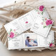 Ce programme triplé magnifiquement conçu pour un mariage de printemps présente des branches ornées de fines fleurs roses, complétées par des fleurs blanches et des feuilles verts sauge aux coins. L'élégante mise en page comprend une photo chère du couple qui est exposée au centre du panneau intérieur, tandis que leurs noms sont artistiquement crées dans la typographie décorative. Chaque panneau est encadré de fines bordures noires et élégantes, ajoutant une touche de sophistication à ce programme de cérémonie et de célébration de mariage charmant.