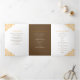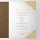 Brown programme de mariage d'art botanique à feuilles d'oranger dessiné à la main avec vos propres sections histoire d'amour et souvenir. Personnalisez ce programme triplé mariage avec vos propres détails de cérémonie de mariage, les noms de fête, l'histoire d'amour et les dédicaces. Un design simple de feuilles encerclant vos propres initiales monographiques en orange et marron sur blanc. Autres couleurs et articles mariages correspondants disponibles. © Dessin et dessin de la feuille d'origine par Sarah Trett pour www.mylittleedenweddings.com sur Zazzle.