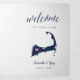 Vous planifiez un mariage à destination, ou vous attendez à beaucoup d'invités hors de la ville? Partagez un message de bienvenue pour vos invités mariages de Cape Cod ainsi qu'un itinéraire ou l'horaire des événements du week-end. L'avant présente une carte en silhouette bleu marine de Cape Cod, Massachusetts au coeur rose. (Vous pouvez customiser la couleur de l'état et la position du coeur dans l'outil de design!) Personnalisez l'intérieur avec un message d'accueil personnel et un calendrier détaillé des événements ou l'itinéraire du week-end mariage. Parfait pour inclure dans l'hôtel des sacs de bienvenue ou livrer dans les chambres de vos invités.
