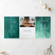 Un programme de renouvellement mariage vert émeraude de l'art moderne de six pages. Modifiez ce programme de mariage avec vos propres noms de mariage, dates, introduction, libellé de cérémonie, accompagnateurs de mariage, deux photos de votre premier événement ou mariage restreint, et vos remerciements. Art et design abstrait d'aquarelle lavée par www.mylittleedenweddings.com
