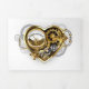 Coeur steampunk mécanique, volumétrique, avec manomètre, acier et or sur arrière - plan blanc. Style Steampunk.