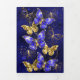 Composition des luxueux papillons saphir et bijoux en or sur arrière - plan bleu texturé.