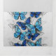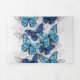 Vertical composition of réalistes, blue and white morpho butterflies on gray textured background. Morphine bleu.