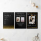 Une façon sincère et digne d'honorer et de se souvenir de votre être cher. Conçue avec le plus grand soin et le plus grand soin du détail, cette invitation combine l'élégance intemporelle de l'or à la solennité du noir, créant un souvenir vraiment raffiné et respectueux. La personnalisation est au coeur de cette invitation, vous permettant d'honorer la mémoire de votre être cher d'une manière unique. Le devant de l'invitation est orné de la phrase "In Loving Memory", un doux rappel du lien profond que vous avez partagé. Le design élégant crée une atmosphère sereine, donnant le ton d'un service commémoratif significatif et sincère. Ajoutez toutes vos informations personnalisées dans les espaces modifiables et ajoutez deux photos supplémentaires au dos.