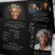 Programme funéraire moderne en noir et or, offrant une conception neutre et élégante pour tous les mémoriaux, la célébration de la vie ou les services funéraires. Ce programme triplé imprimé et conçu par des professionnels est composé d'un arrière - plan noir intemporel associé à un serif beige doré sophistiqué et à un texte de script, créant une esthétique respectueuse et raffinée pour honorer un être cher. La couverture comprend de l'espace pour une grande photo ainsi que des espaces réservés pour le nom et la date, tandis que les panneaux intérieurs sont soigneusement arrangés pour une commande de service, des accusés de réception, nécrologie, poème ou lecture personnalisable. Avec six photos personnalisables et des sections clairement structurées, cette disposition permet de créer facilement un hommage personnalisé qui reflète la vie et la mémoire de votre être cher. Conçu pour convenir à tous les genres, confessions et arrière - plans, ce modèle polyvalent est idéal pour les services religieux, les célébrations à domicile et les événements commémoratifs. Le style élégant, la mise en forme spacieuse et les champs de contenu modifiables vous permettent de créer un souvenir significatif qui honore la vie et l'héritage de votre être cher avec dignité.