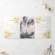 Programme de mariage d'art botanique Frangipani en or blanc avec 2 photos en pleine page. Personnalisez ce programme triplé mariage avec vos propres détails de cérémonie de mariage. Fleurs d'aquarelle tropicale frangipani blanches simples avec centres dorés sur blanc. Autres éléments mariages correspondants disponibles. © Couleur d'aquarelle d'origine, peinture et design de Sarah Trett pour www.mylittleedenweddings.com sur Zazzle.