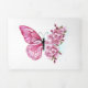 Flower arrangement of pink butterfly with rose Japanese cherry blossoms on white background.