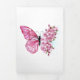 Flower arrangement of pink butterfly with rose Japanese cherry blossoms on white background.