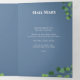Triplé programme funéraire où vous pouvez ajouter deux photos de votre être aimé avec une nécrologie, ordre de service, leur psaume préféré, poème, ou prière, et des remerciements. Le programme funéraire du lierre est imprimé dans une ombre profonde de bleu muet avec d'élégantes polices blanches et l'escalade de lierre à travers les pages.