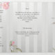 This refined trifold program features soft grey stripes and delicate blush peony artwork, creating a calm and sophisticated presentation suited to a modern Islamic wedding.