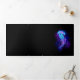 Grande méduse bleue, artistiquement dessinée, brillante, brillante, avec de longues tentacules sur arrière - plan noir avec bioluminescence violette. Méduse brillante.