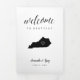 Vous planifiez un mariage à destination, ou vous attendez à beaucoup d'invités hors de la ville? Partagez un message de bienvenue pour vos invités mariages du Kentucky, ainsi qu'un itinéraire ou l'horaire des événements du week-end. Avant présente une carte silhouette de l'état du Kentucky avec un coeur à l'intérieur. (Vous pouvez customiser la couleur de l'état et la position du coeur dans l'outil de design!) Personnalisez l'intérieur avec un message d'accueil personnel et un calendrier détaillé des événements ou l'itinéraire du week-end mariage. Parfait pour inclure dans l'hôtel des sacs de bienvenue ou livrer dans les chambres de vos invités.