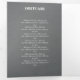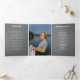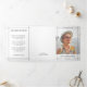 Programme funéraire triplé moderne et élégant que vous pouvez personnaliser avec deux photos de votre être cher, une sur la couverture et une plus grande à l'intérieur. Ajoutez la nécrologie et l'ordre de service en polices blanches contre un arrière - plan en pierre grise, ainsi que les accréditations en gris contre blanc sur le dos.