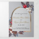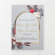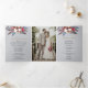 Programme de mariage triptyque en coton rustique hiver bleu poussiéreux avec des baies rouges et des photos avant et arrière