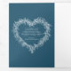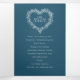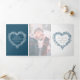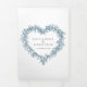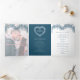 L'art botanique dessiné à la main par Mistletoe dans un programme de mariage en forme de coeur avec 2 photos pleine page en bleu foncé et blanc d'hiver enneigé. Personnalisez ce programme triplé mariage avec vos propres détails de cérémonie de mariage. Une ligne d'art botanique simple encerclant vos propres initiales monographiques en bleu foncé et en blanc. Autres couleurs et articles mariages correspondants disponibles. © Dessin et dessin original de Sarah Trett exclusivement pour www.mylittleedenweddings.com sur Zazzle.