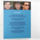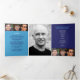 Programme funéraire graphique moderne simple en bleu foncé, cyan et blanc. Remplacez l'exemple de texte et de photos avec vos photos spéciales et votre ordre de service commémoratif, nécrologie, lecture ou poème, accusé de réception et informations personnelles. D'autres articles de funérailles et de souvenir correspondants sont disponibles. Graphique textuel 'Le passage d'une légende' et design par www.mylittleeden.com
