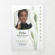 A modern, elegant tri‑fold funeral program featuring a soft peace lily theme and two full photo collages totaling 35 images. The front cover showcases a contemporary organic portrait frame paired with gentle lilies for a serene, timeless presentation. Inside, you’ll find a spacious 21‑photo collage panel paired with a coordinating 14‑photo collage on the folding panel, creating a seamless two‑panel display when opened. Fully editable text makes it simple to personalize every detail for a funeral, memorial, or celebration of life.