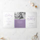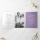 Texte simple et petit programme de mariage à coeur blanc avec vos propres deux photos, histoire d'amour, l'ordre de cérémonie, mariage et sections de remerciements. Personnalisez ce programme triplé mariage mono violet et blanc avec vos propres noms et détails de cérémonie mariage. Autres couleurs et articles mariages correspondants disponibles. © Design par Sarah Trett pour www.mylittleedenweddings.com sur Zazzle.
