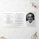 Elégant programme triplé de funérailles ou de service commémoratif avec une seule photo et un design noir et blanc classique offre un moyen intemporel d’honorer la vie et l’héritage de votre être aimé. La couverture avant est ornée d'une grande photo en forme d'arc suivie de la rubrique éditable "Une fête de la vie", avec le nom et les dates magnifiquement affichées dans les polices de script et de serif. Le reste de la mise en page offre suffisamment d'espace pour une nécrologie détaillée, un ordre de service, un poème ou une prière significatif, des remerciements, des touches personnelles telles que des citations, des souvenirs, une chronologie de vie, ou tout autre texte de votre choix. Une typographie propre et une disposition structurée assurent lisibilité et grâce, ce qui en fait l'idéal pour les mémoriaux traditionnels, les célébrations de la vie ou les services religieux.