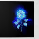 Rose abstraite en fleurs issue d'une flamme bleue sur fond noir. Rose de feu.