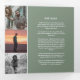 Simple carré moderne graphique de programme funéraire en forme de sauge muet vert et blanc. Remplacez l'exemple de texte et douze photos de l'espace réservé par vos propres photos spéciales et votre ordre mémorial, nécrologie, lecture ou poème, et les accusés de réception, citation spéciale et informations personnelles. D'autres articles de souvenir de conservation funéraire correspondants sont disponibles. A conseiller aux amateurs de plein air de nature et aux jardiniers plante et hommes. Conception par Sarah Trett pour www.mylittleeden.com
